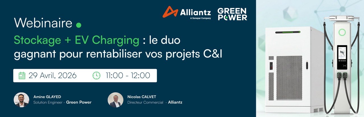 Rejoignez-nous pour un webinaire exclusif organisé par Green Power en partenariat avec Alliantz, dédié aux solutions de stockage d’énergie et de recharge pour véhicules électriques (EV charging) de nouvelle génération pour les projets C&I.